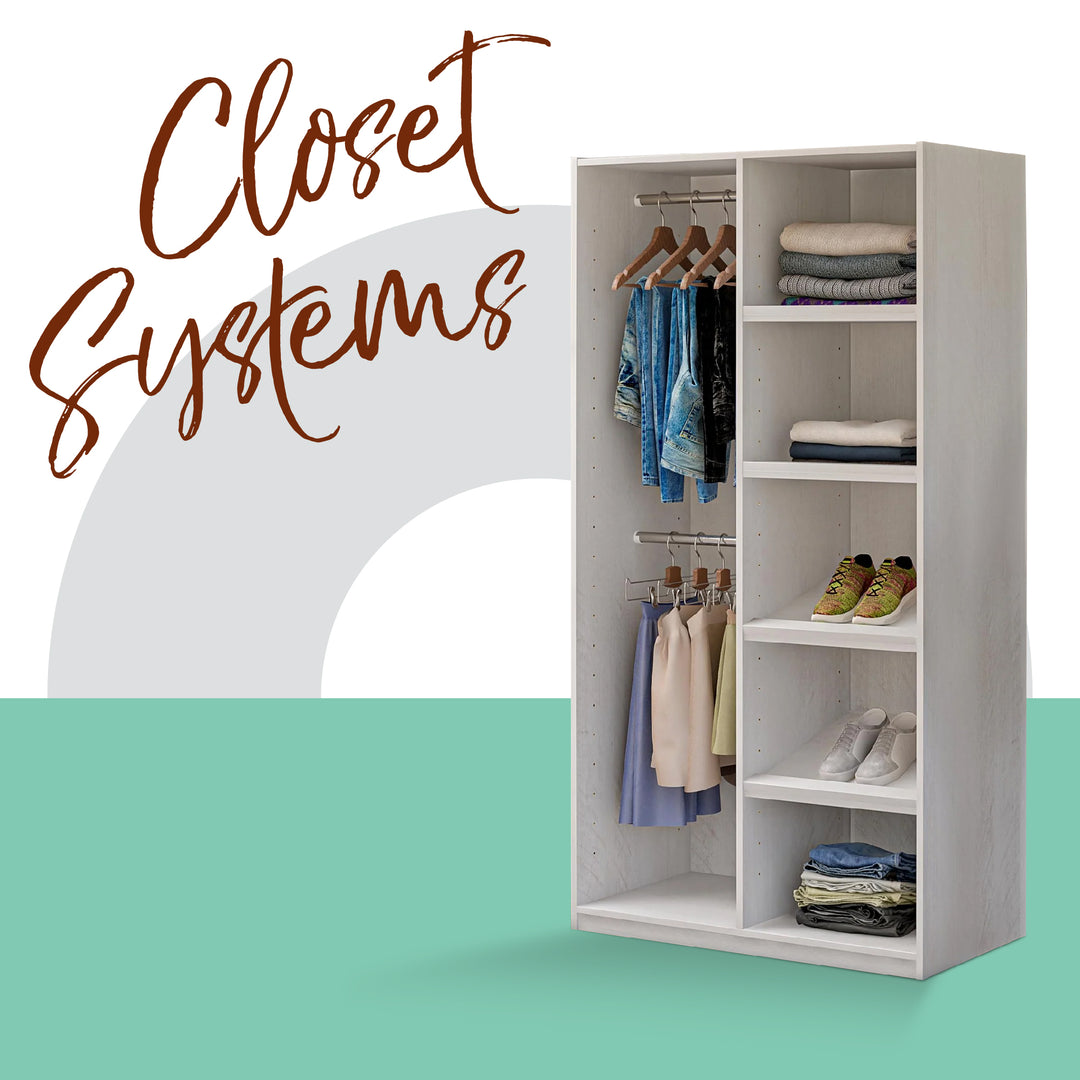 Closet storage systems simplify the process of organizing your cluttered closet. Explore our customizable, modular, solutions to create your ideal closet layout. Incorporate hanging rods, shelves, drawers, and various storage options to achieve a clutter-free space.