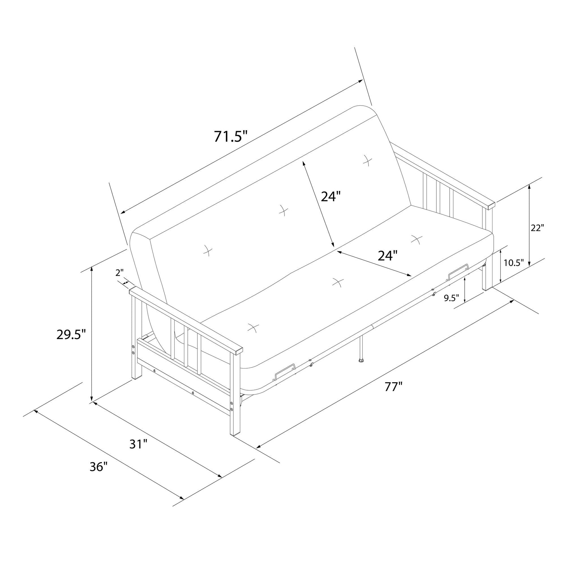 Harlow Full Metal Arm Futon with 6 Inch Thermobonded High Density Polyester Fill Futon Mattress