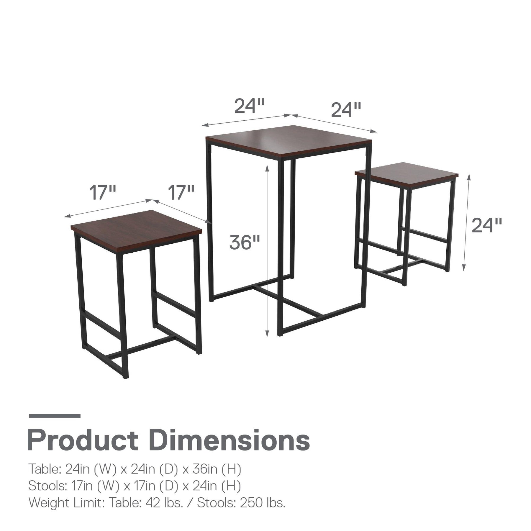 Bungalow 3-Piece Pub Set with Wood Tabletop and Metal Frame