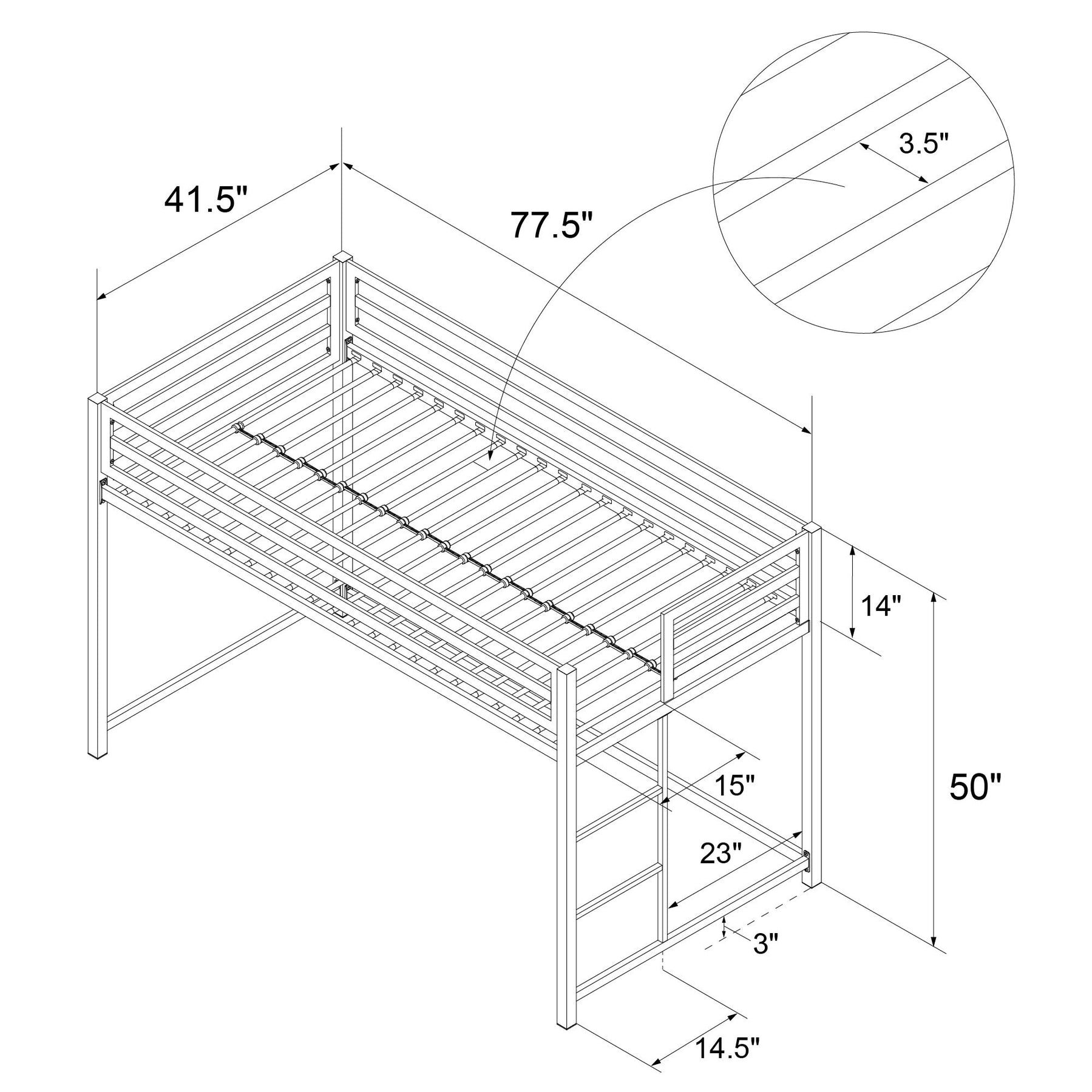Need a bed upgrade for your little one? Look no further than the DHP Miles Metal Junior Twin Loft Bed. With a streamlined silhouette in solid metal and a touch of modern industrial style, this loft bed is a top choice. Crafted with a sturdy metal frame, it includes a ladder on the side for easy climbs up and down. The Miles is also equipped with full-length guardrails for ultimate safety and in addition, it comes with secured heavy-duty metal slats that provide ample support, stability and air circulation for the mattress to keep it as fresh as new. This loft bed is made shorter than the average height, making it ideal for younger children. Nonetheless, it has expansive under-bed clearance to maximize floor space in your child's room. Available in multiple colors, the Miles Metal Junior Twin Loft Bed accommodates a standard twin size mattress of maximum 6 inches high (sold separately). Children must be at least 6 years old to use the top bunk.