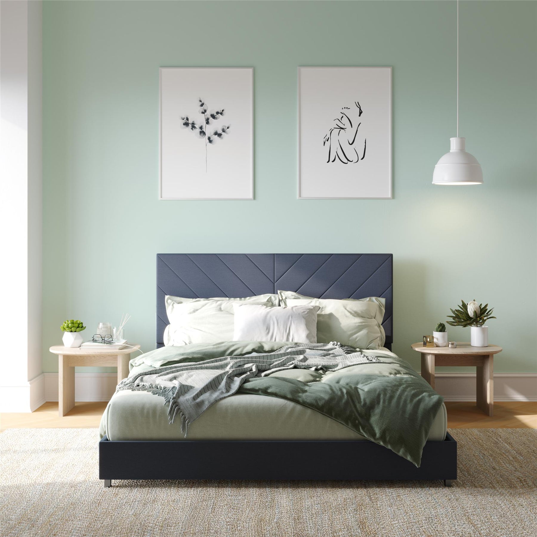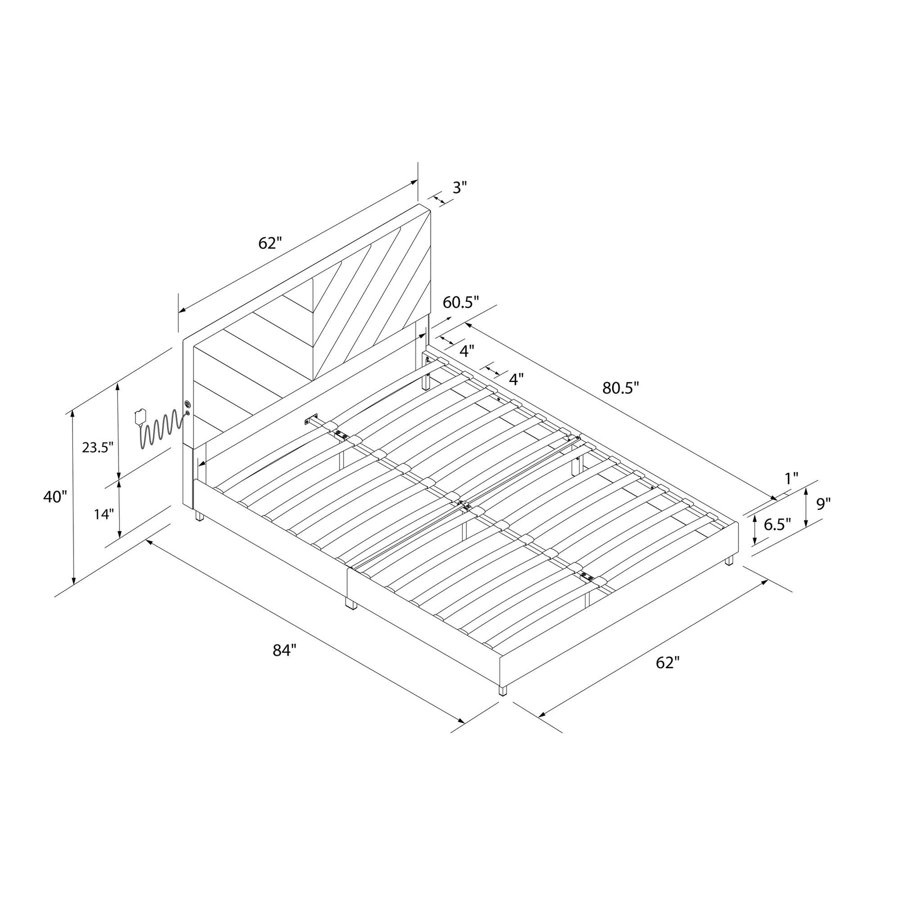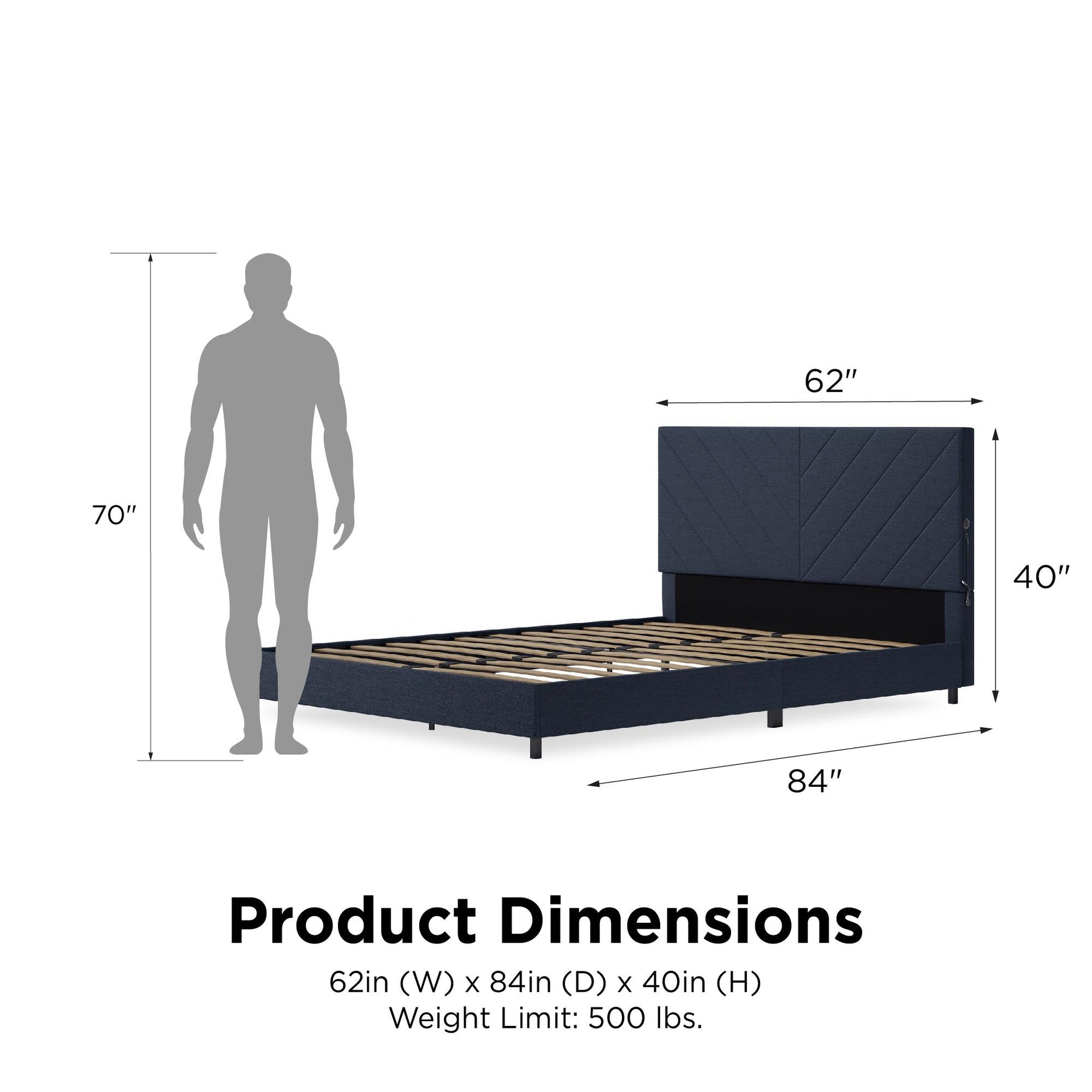 Notice how you get the most important texts and emails from family and co-workers right as you get up to start your daye It's also true that you hardly ever read those said messages on time because you consistently forget to charge your phone overnight. Stay in the loop with the DHP Paxson Upholstered Bed with USB. The Paxson will keep you from being late and totally unprepared for those oh so vital early morning work meetings with VIPs you regularly get emailed about and prevent other avoidable and embarrassing mishaps with a super practical built-in dual USB port and power adapter positioned on the side of the headboard that'll make sure you've always got fully charged devices on hand. Plus, you'll also be connected to the latest style with an attractively arrowhead pattern stitched headboard and slim build bed that is all the rage. We got a feeling you'll ace your next meeting!
