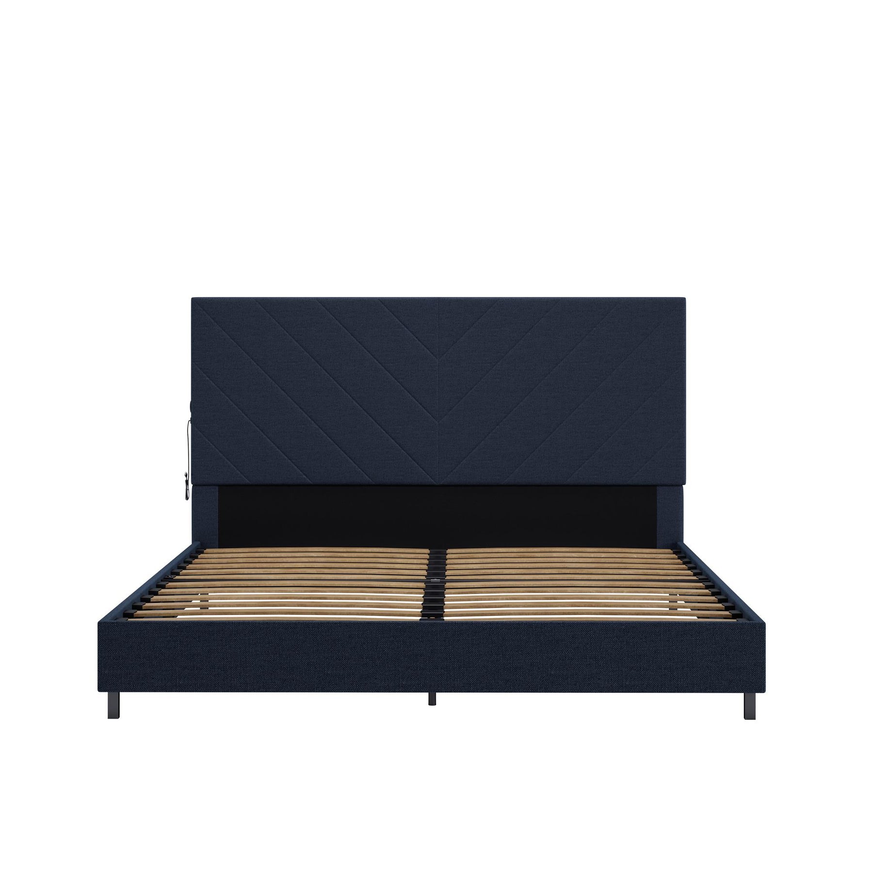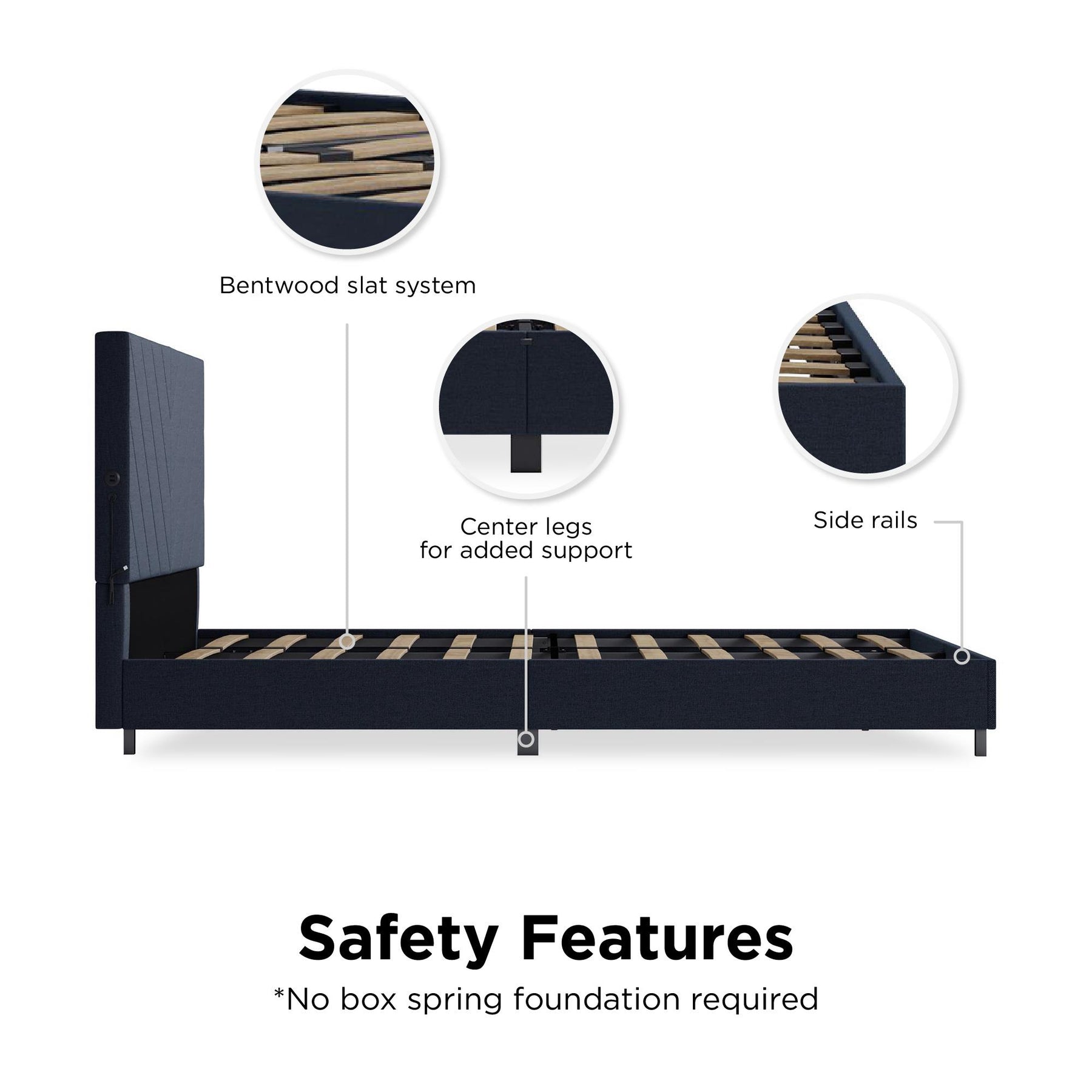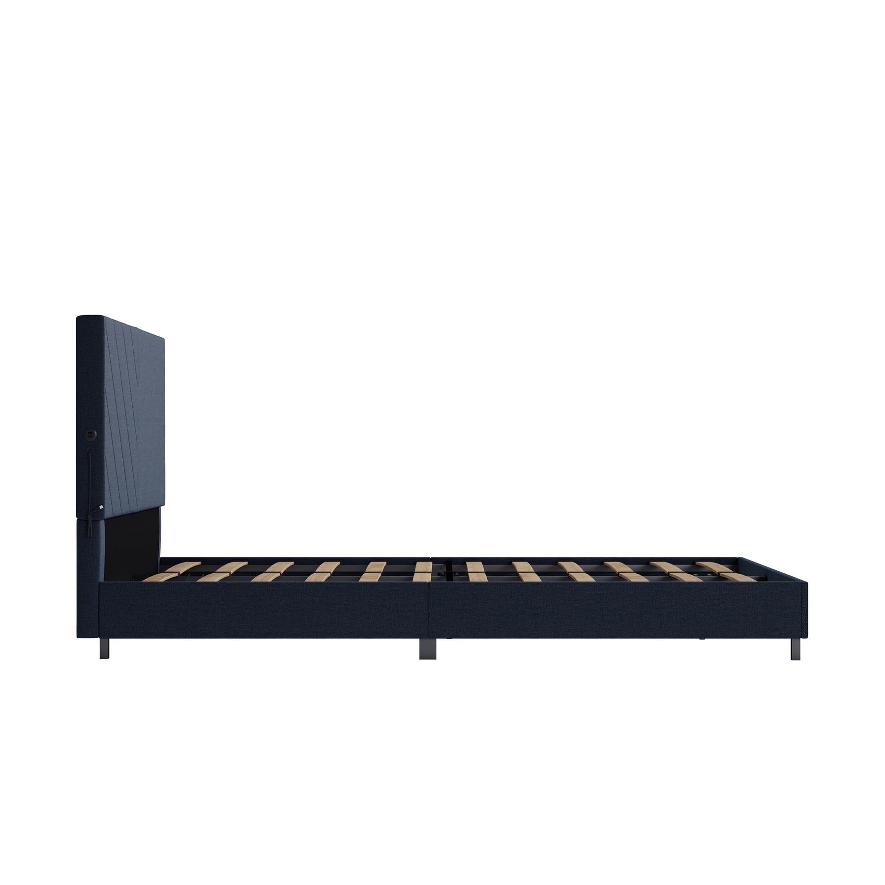 Paxson Upholstered Bed with USB Port and Wood Slats - Navy - Queen
