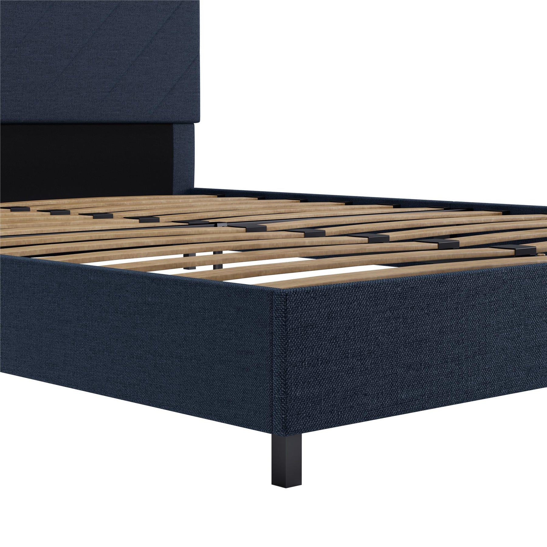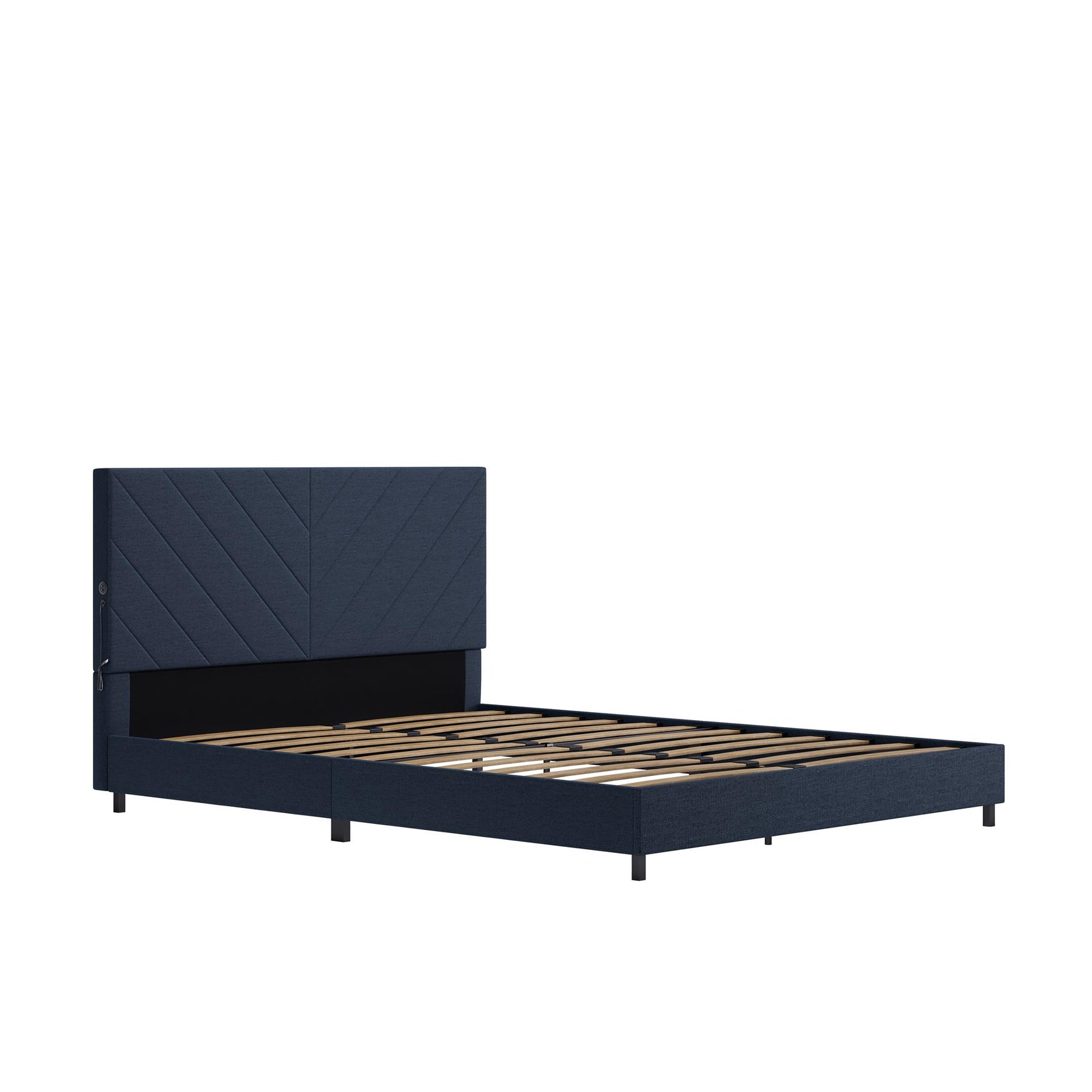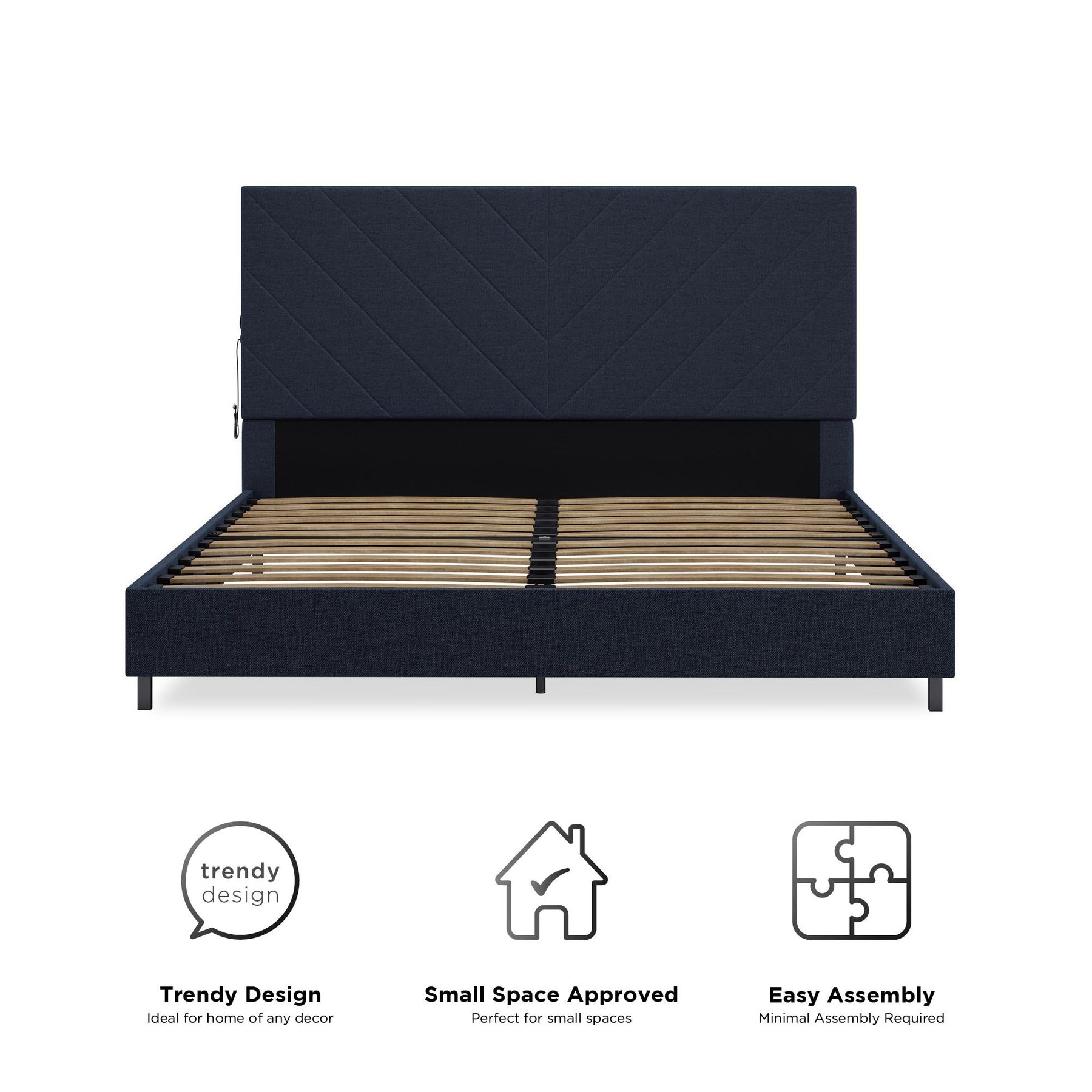 Paxson Upholstered Bed with USB Port and Wood Slats - Navy - Queen