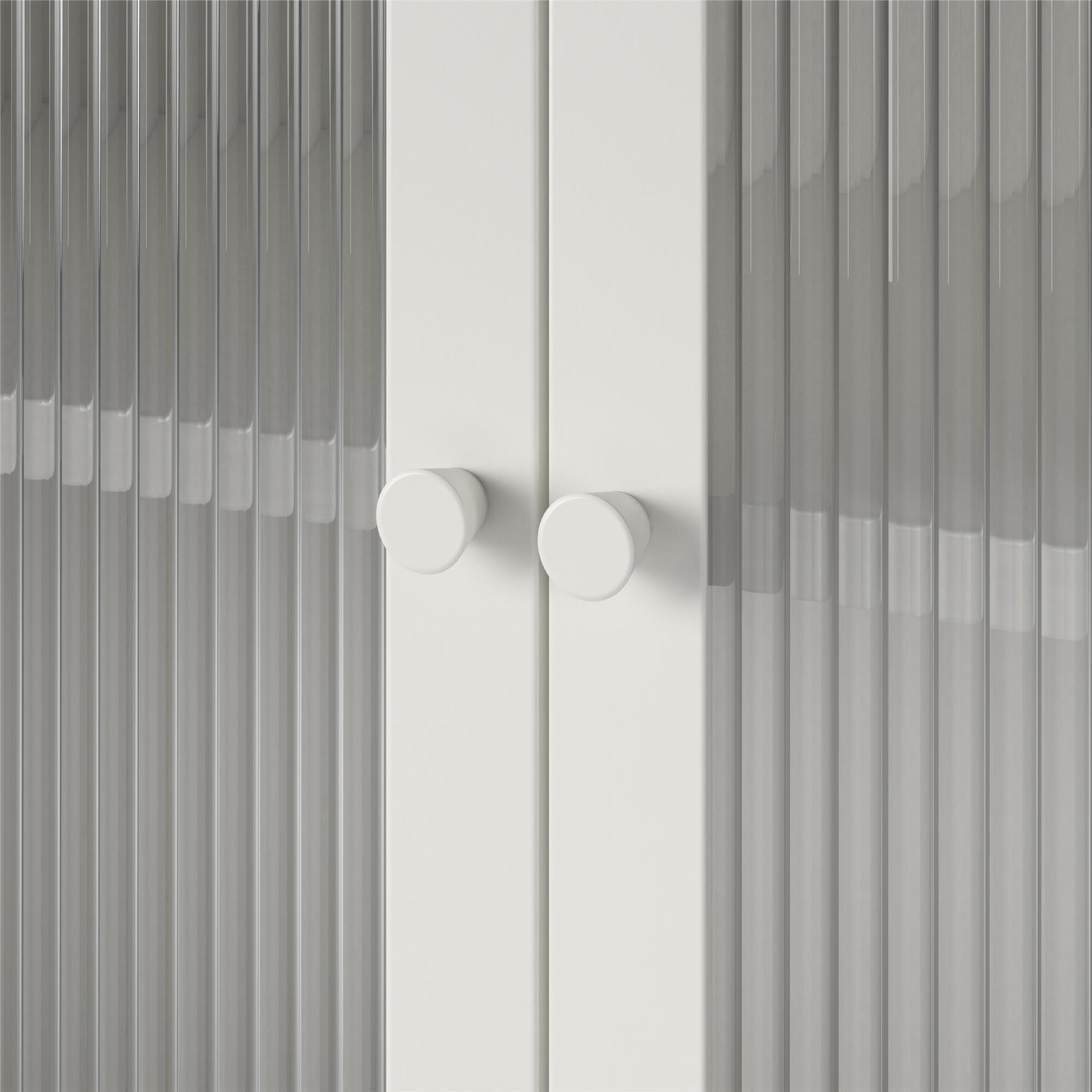 Shadwick 2 Door Tall Metal Locker Style Storage Cabinet-Fluted Glass Doors - White