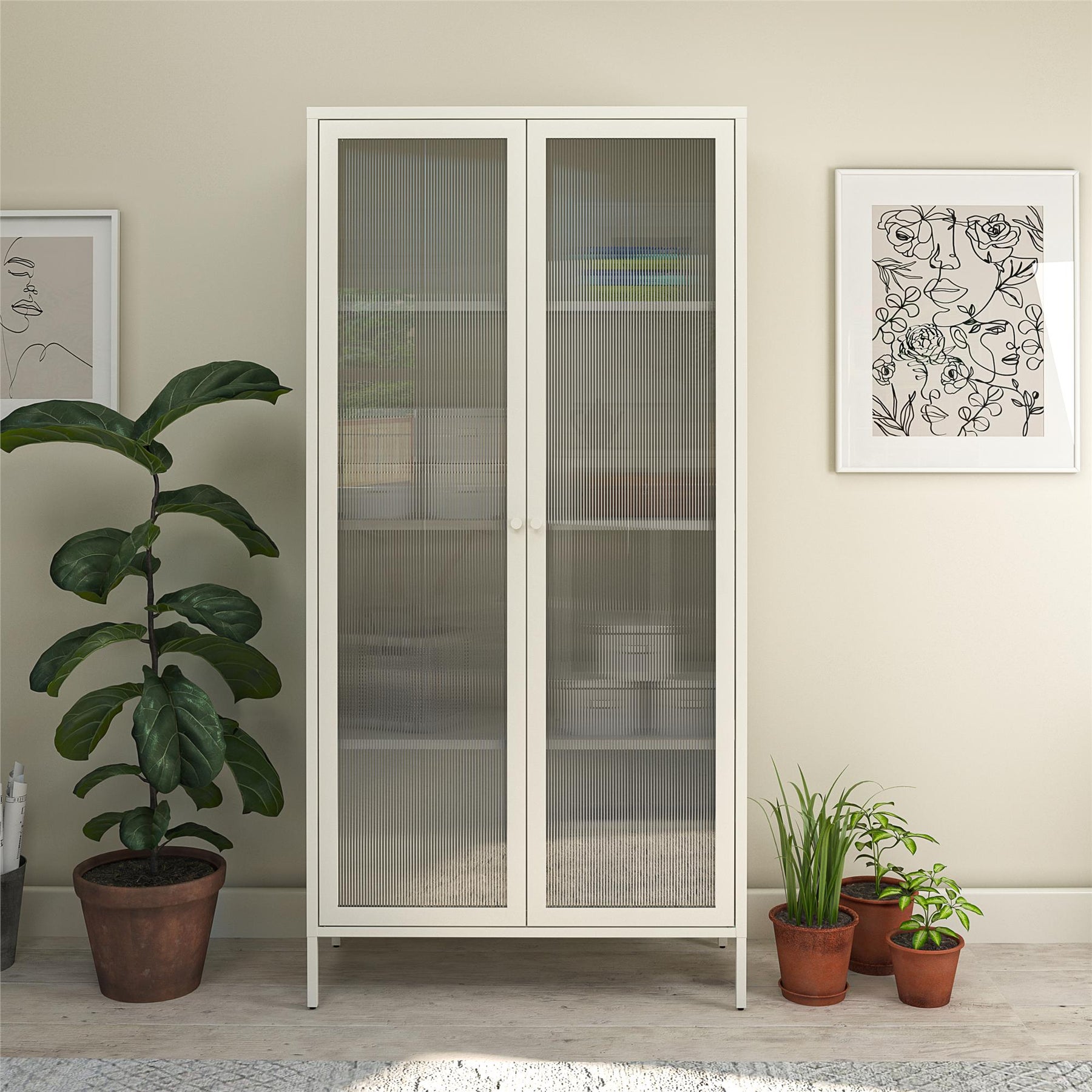 Shadwick 2 Door Tall Metal Locker Style Storage Cabinet-Fluted Glass Doors
